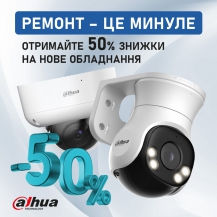 Якщо ваше обладнання старше 3 років і потребує ремонту, ми пропонуємо вам відмовитися від ремонту та придбати нове, аналогічне обладнання від бренду Dahua зі знижкою 50% від роздрібної ціни. Ви отримаєте сучасну техніку із повною гарантією!